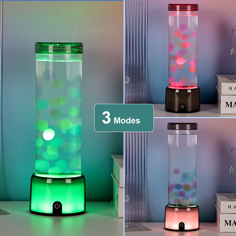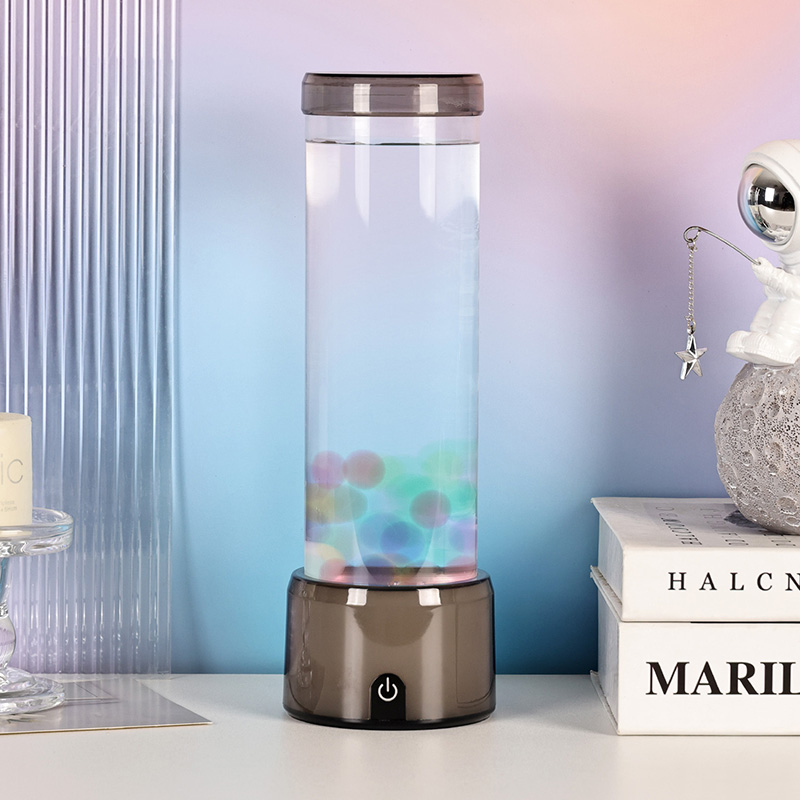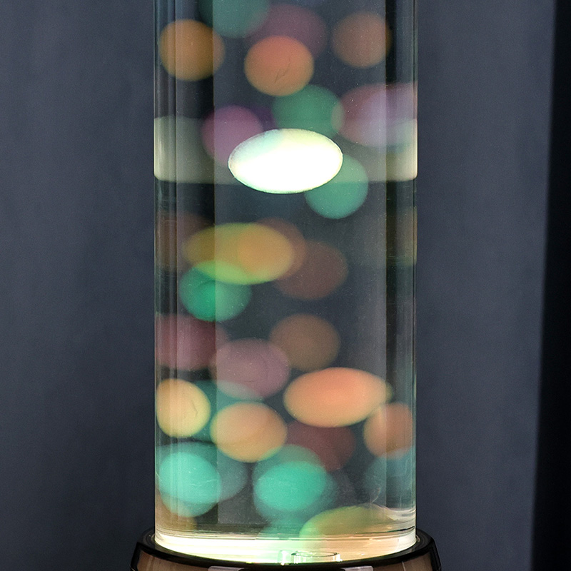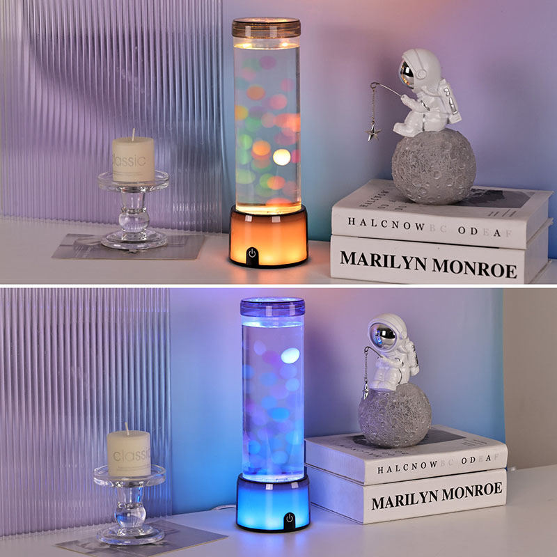 La forma cilindrica alta ed elegante della lampada le conferisce un aspetto moderno e minimalista che si abbina a vari stili di interni. Il suo corpo trasparente consente la piena visibilità degli elementi interni, comprese le meduse galleggianti e i riflessi di luce scintillanti. Il liquido all'interno è appositamente formulato per simulare il flusso dell'acqua, esaltando il realismo del movimento fluttuante. Mentre i LED cambiano colore, le meduse sembrano pulsare di vita, aggiungendo profondità e movimento alla scena.
