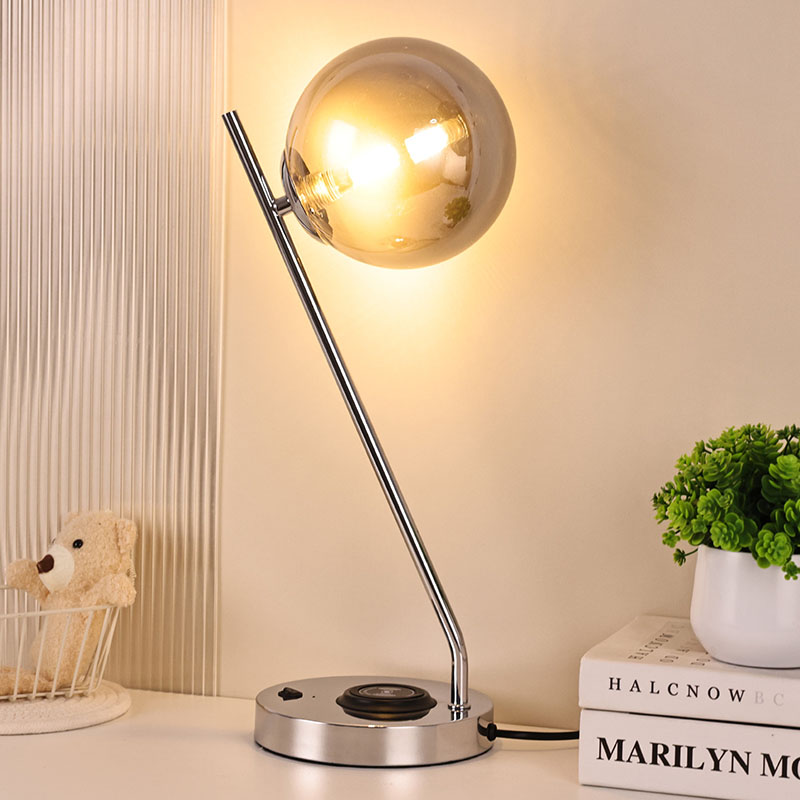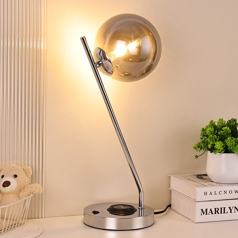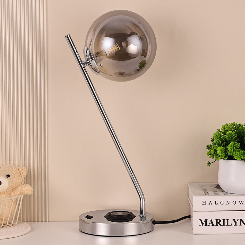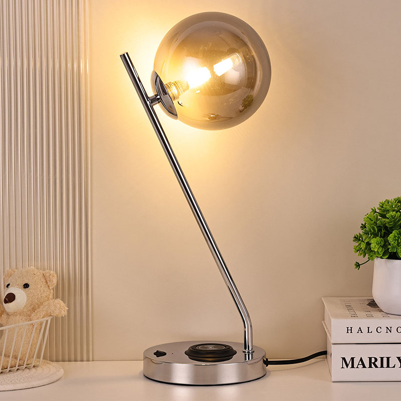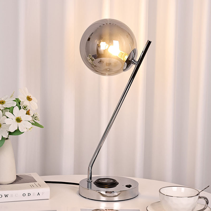 La lampada da scrivania a sfera in vetro scuro con caricatore wireless è realizzata con base in metallo e vetro. La copertura in vetro non solo conferisce alla lampada una struttura trasparente e pura, ma diffonde anche efficacemente la luce, rendendola più morbida e uniforme. La base in metallo è stata finemente lucidata e trattata, con una superficie liscia e delicata, confortevole al tatto, ed emana un'atmosfera nobile ed elegante. Sia posizionata in camera da letto, in soggiorno o in studio, questa lampada da scrivania può fondersi perfettamente con l'ambiente circostante, aggiungendo un'atmosfera moderna e artistica