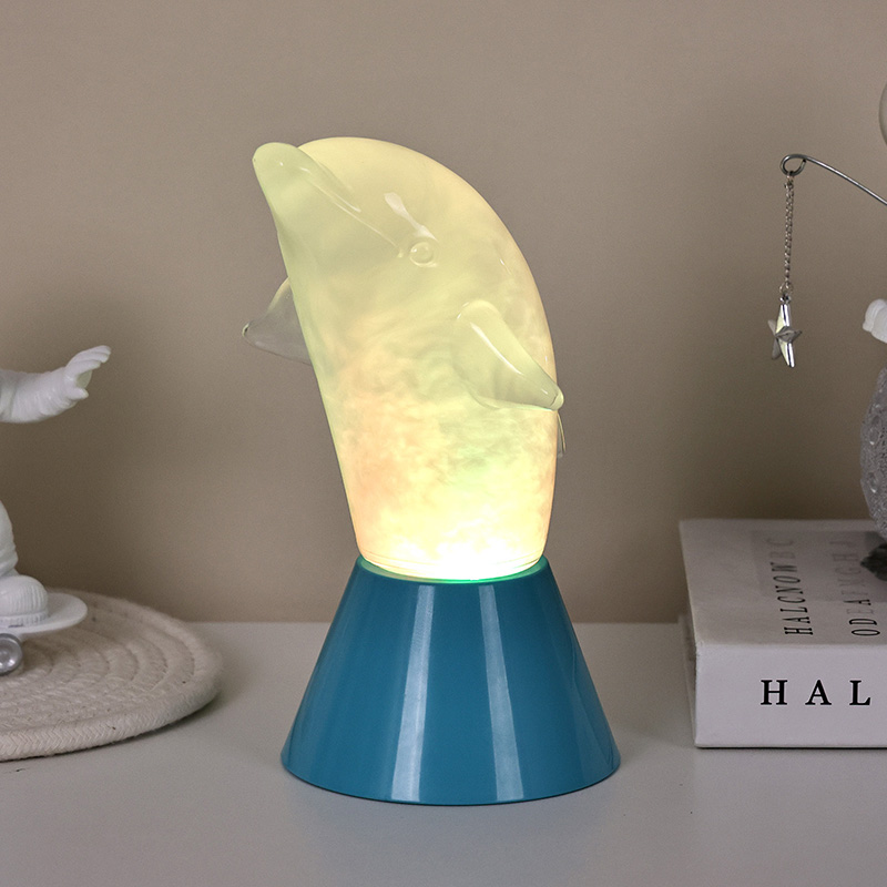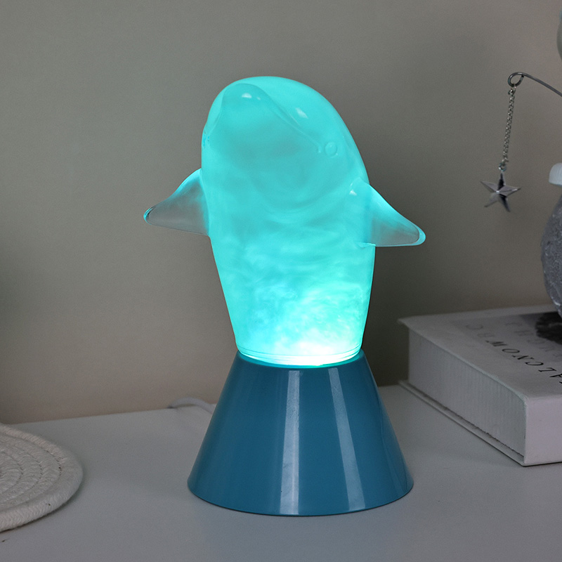 Dolphin Kid RGB Nigh Light è progettato a forma di simpatico delfino, con linee morbide e dettagli squisiti che ripristinano perfettamente l'agile postura dei delfini. All'interno del guscio trasparente del delfino, il liquido nebbioso che scorre ricorda le onde dell'oceano, ondeggiando dolcemente, creando un'atmosfera pacifica e misteriosa. Ogni volta che guardi questa lampada, ti senti come se fossi nelle profondità dell'oceano, sperimentando il fascino infinito della natura