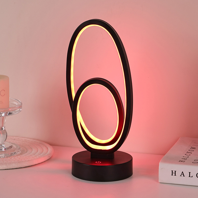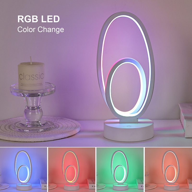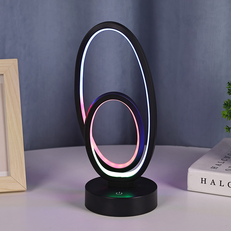 La lampada da scrivania RGB con doppio paralume circolare ad anello è un accento artistico per gli spazi domestici, dotata di alimentatore DC sicuro a bassa tensione per prestazioni stabili ed efficienti dal punto di vista energetico, garantendo un utilizzo sicuro. Adatto a vari scenari come soggiorni, camerette, zone studio e camere da letto