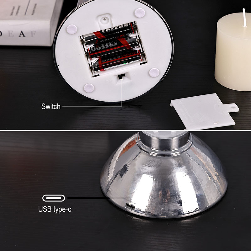 Batteria 3AAALa candela decorativa in stile europeo è realizzata in metallo e plastica, con sia la parte superiore che quella inferiore in metallo. La parte superiore può contenere le candele comunemente usate per l'illuminazione e la parte centrale è progettata in stile europeo a forma di zucca.