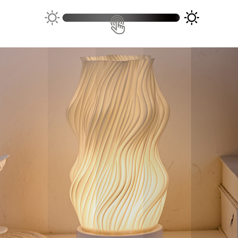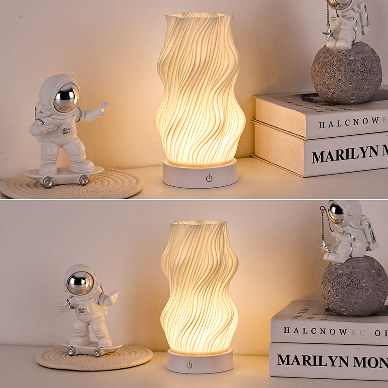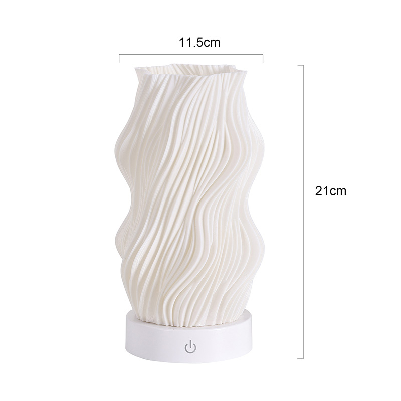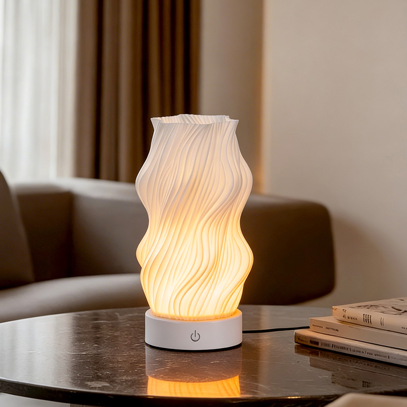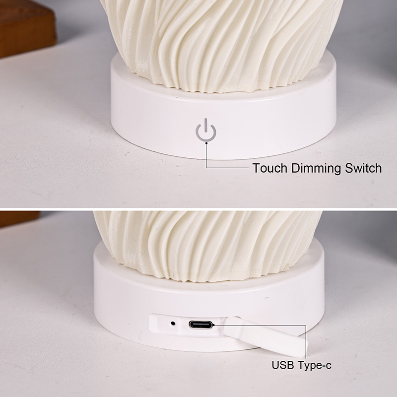 Realizzato in plastica di alta qualità, il corpo della lampada da tavolo Flame Night Light è (compatto) e leggero. Non solo è caldo al tatto, ma è anche facile da pulire e spostare. Il design minimalista con trama ondulata combina bellezza artistica e praticità, fondendosi facilmente con qualsiasi stile di arredamento. È un pezzo d'accento perfetto e salvaspazio che aggiunge un tocco di eleganza alla tua stanza.