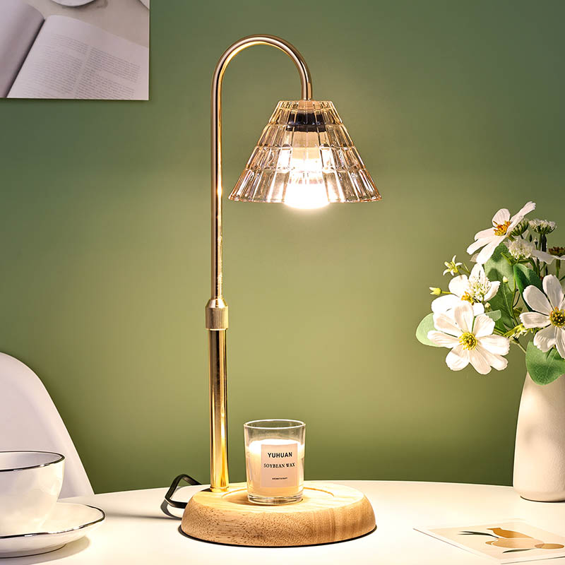 La lampada da tavolo con paralume in vetro e altezza regolabile è uno stile di design tradizionale, costituito da una lampadina tradizionale con una base in legno e un lampione in metallo dorato.