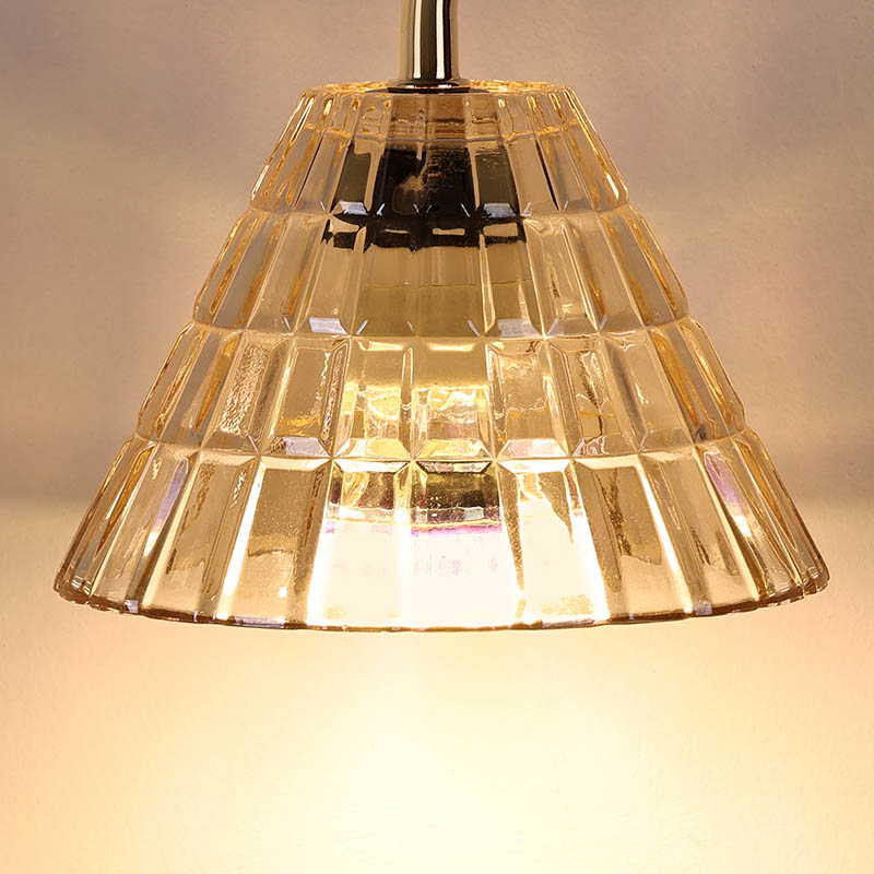 Il paralume è realizzato in vetro trasparente (acrilico) e la luce dai colori caldi è molto adatta per la lettura. Il principale punto di forza della lampada da tavolo con paralume in vetro con regolazione dell'altezza, oltre al suo design, è il palo della lampada regolabile in altezza con un pulsante rotante e anche la gamma di illuminazione può essere regolata in base all'altezza.