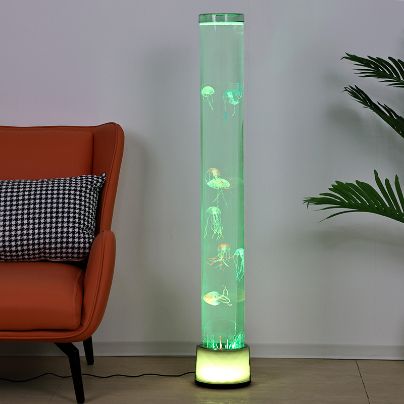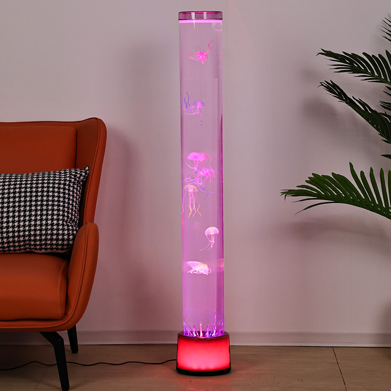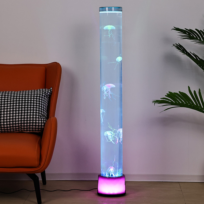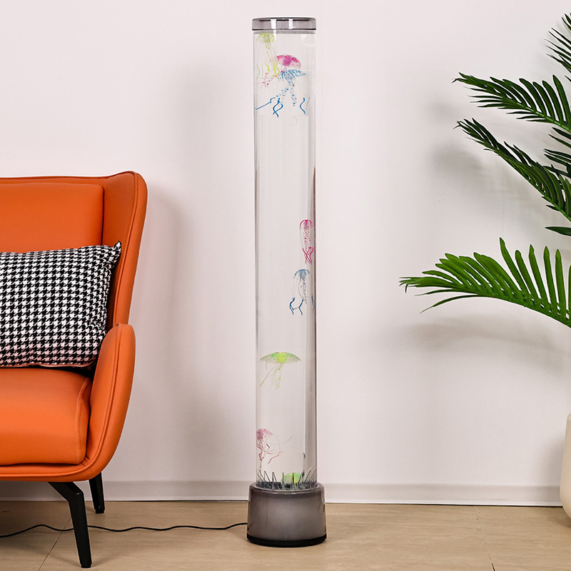 39,5*39,5*115 cmLa grande lampada da terra RGB Jellyfish è un pezzo creativo per l'arredamento della casa che fonde la tecnologia moderna con l'estetica naturale, con effetti di luce da sogno e disegni realistici di meduse