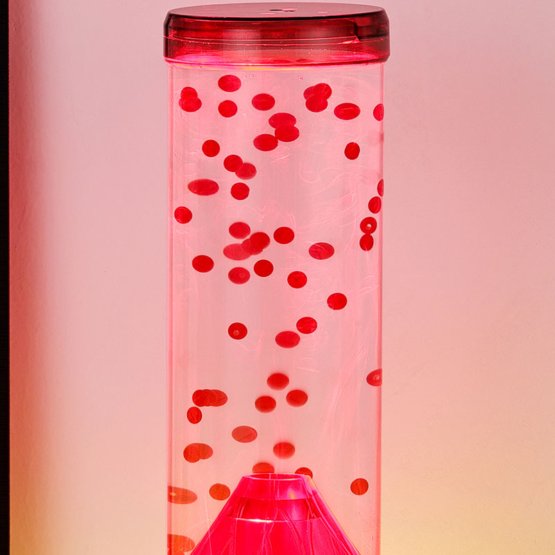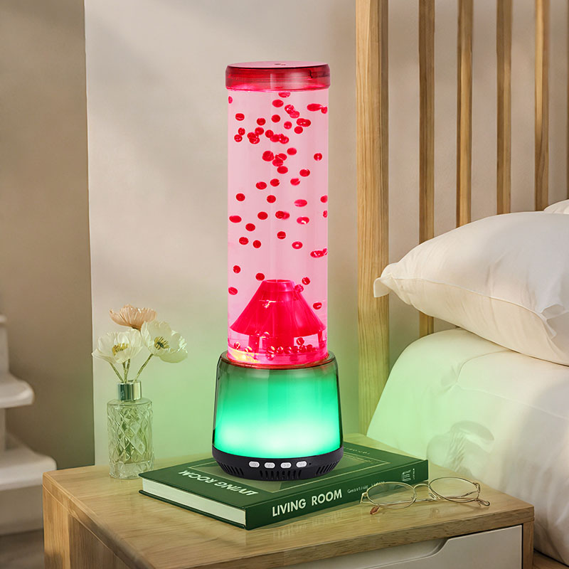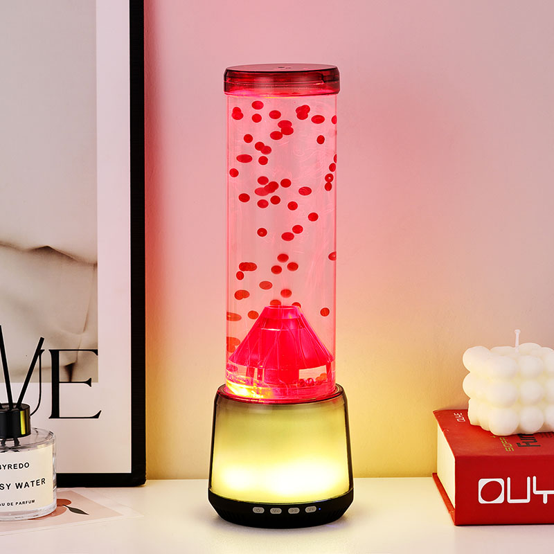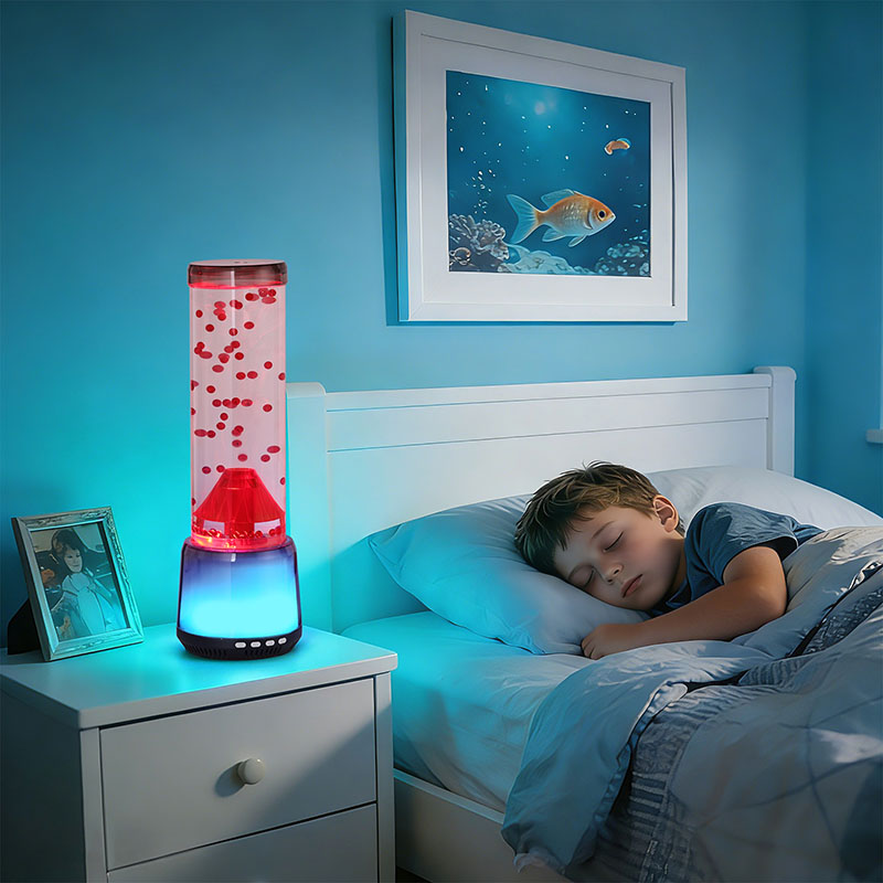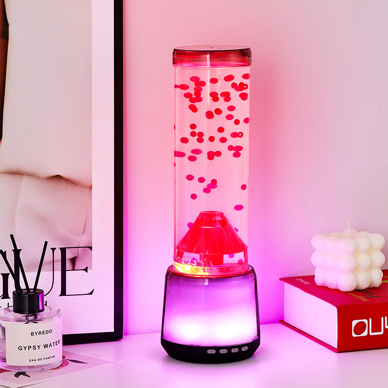 dinamica, dove bolle di colore rosso salgono e scendono continuamente, imitando il flusso naturale della lava fusa o la dolce deriva delle meduse attraverso le correnti oceaniche. Questo effetto ipnotico crea un effetto calmante