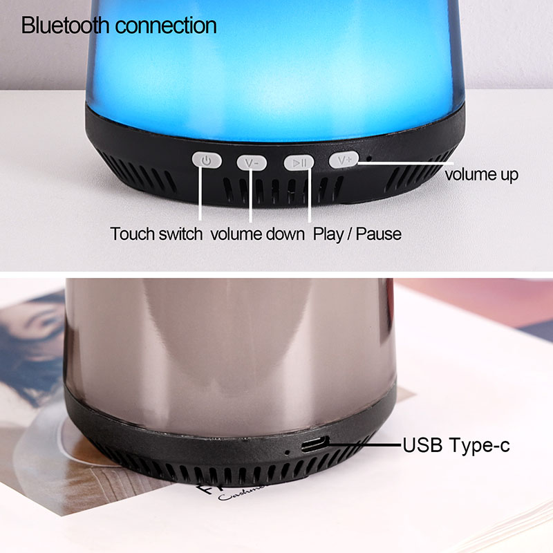 Al centro di questa lampada si trova una base LED che cambia colore che emette una luce morbida e radiosa in uno spettro di colori tra cui rosa, viola, blu, verde, giallo e altri. La luce si sposta gradualmente tra