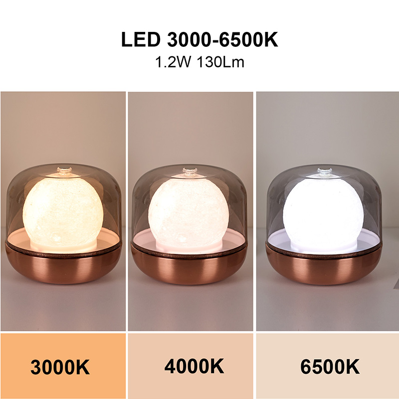 Il design della copertura in vetro trasparente non è solo esteticamente gradevole ma fornisce anche un certo grado di protezione e protezione dalla polvere, garantendo il funzionamento stabile a lungo termine della sorgente luminosa interna. La base inferiore in metallo presenta un'alta qualità