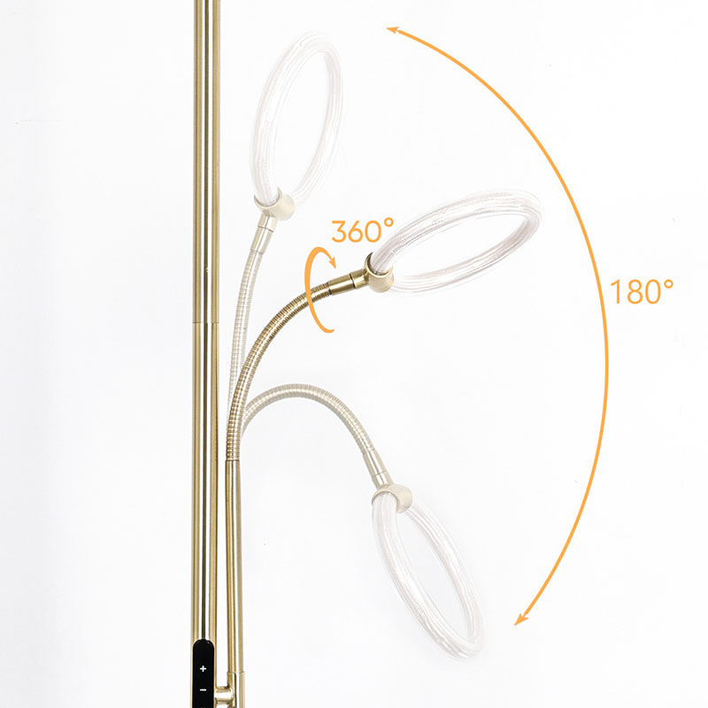 La lampada da terra a led Luxury Gold per soggiorno è dotata di un'avanzata tecnologia di illuminazione a 360 gradi con tubo in silicone, che emette una luce morbida e uniforme, illuminando efficacemente l'intero spazio. I tubi in silicone hanno una buona flessibilità e durata e possono resistere a varie condizioni ambientali per garantire stabilità e sicurezza