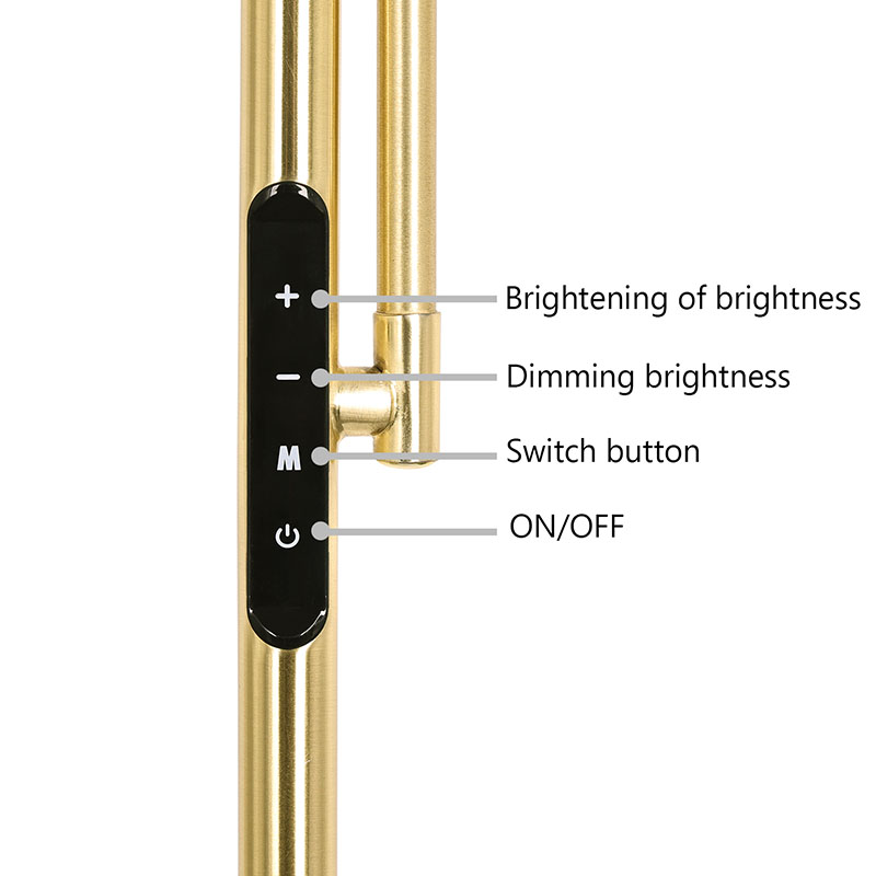 Sebbene la lampada da terra a led Luxury Gold per soggiorno adotti un concetto di design lussuoso, è molto comoda e pratica nell'uso pratico. L'altezza e l'angolazione delle lampade possono essere regolate liberamente ed è possibile regolare in modo flessibile la posizione e la direzione delle lampade in base alle diverse esigenze e scenari. Inoltre, gli apparecchi di illuminazione sono dotati di comodi pulsanti di commutazione, che consentono di controllare facilmente l'accensione/spegnimento e la luminosità delle luci. Attraverso semplici operazioni, puoi regolare liberamente l'intensità dell'illuminazione in base alle diverse esigenze e scene, il che è comodo e pratico