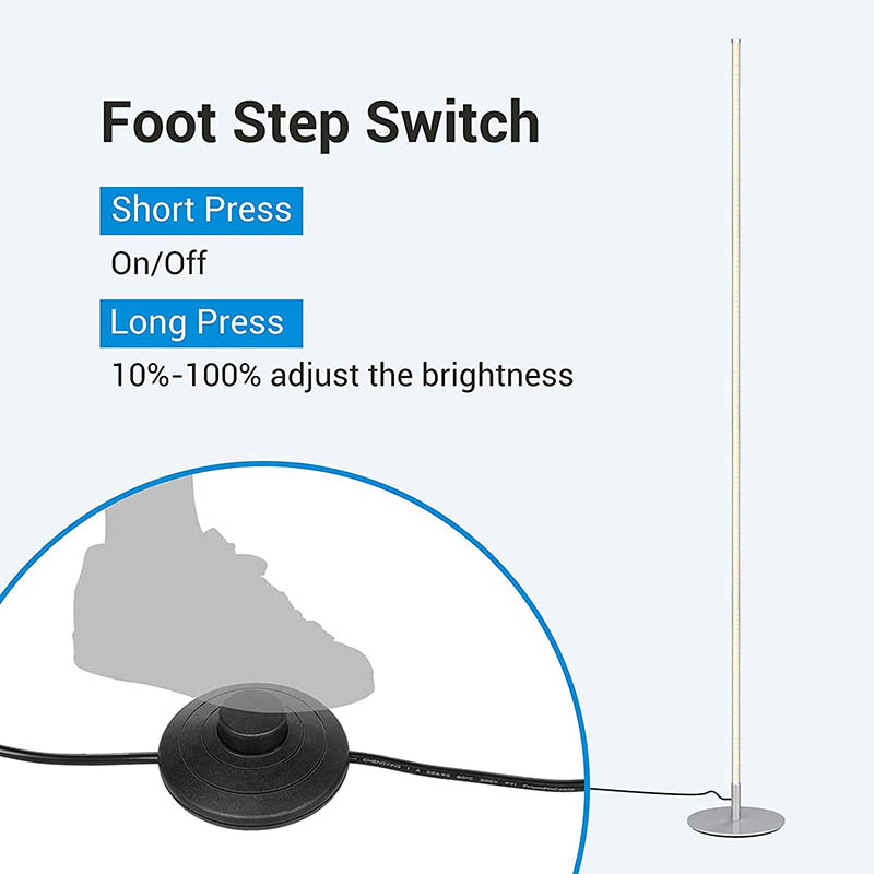 Progettata pensando alla comodità, la nostra lampada da terra a LED è dotata di un interruttore a pedale per un facile utilizzo. Basta premere l'interruttore per accendere o spegnere la lampada, rendendo un gioco da ragazzi controllare l'illuminazione senza dover armeggiare con pulsanti o interruttori. Questo dettaglio di design accurato migliora l'esperienza complessiva dell'utente, garantendo che il funzionamento della lampada sia il più semplice e intuitivo possibile.