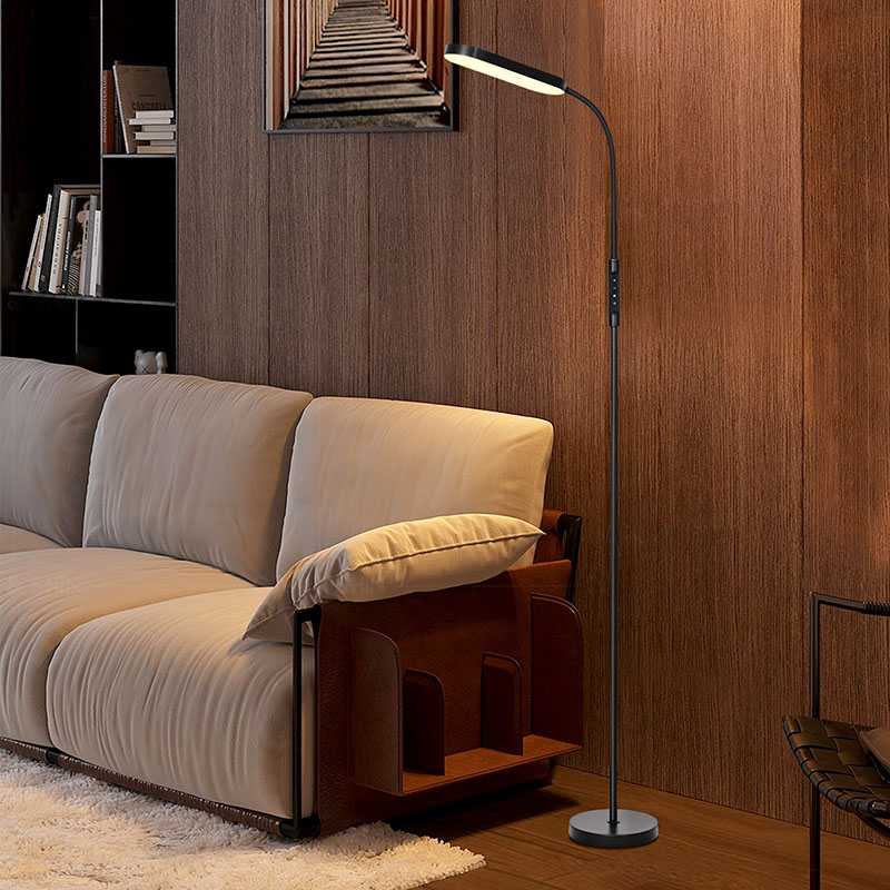 La moderna lampada da terra a led per soggiorno adotta un concetto di design minimalista, con una forma generale semplice e lineare. Il design a palo singolo non solo consente di risparmiare spazio, ma conferisce anche agli apparecchi di illuminazione un'estetica unica. L'asta e la base in metallo nero sono state finemente lucidate e trattate, con una superficie liscia e delicata, una lucentezza morbida e un'atmosfera sobria ma nobile.