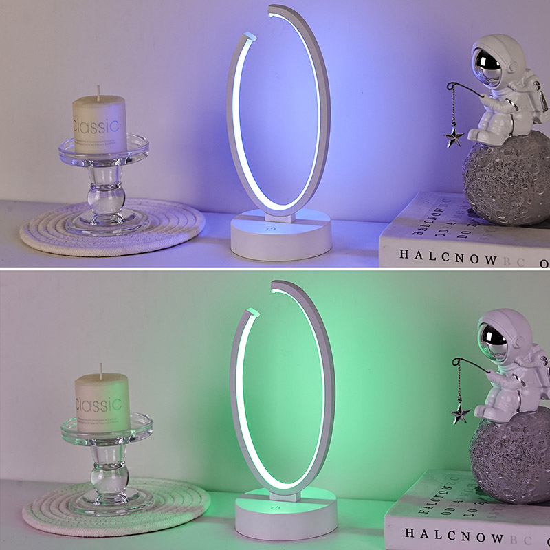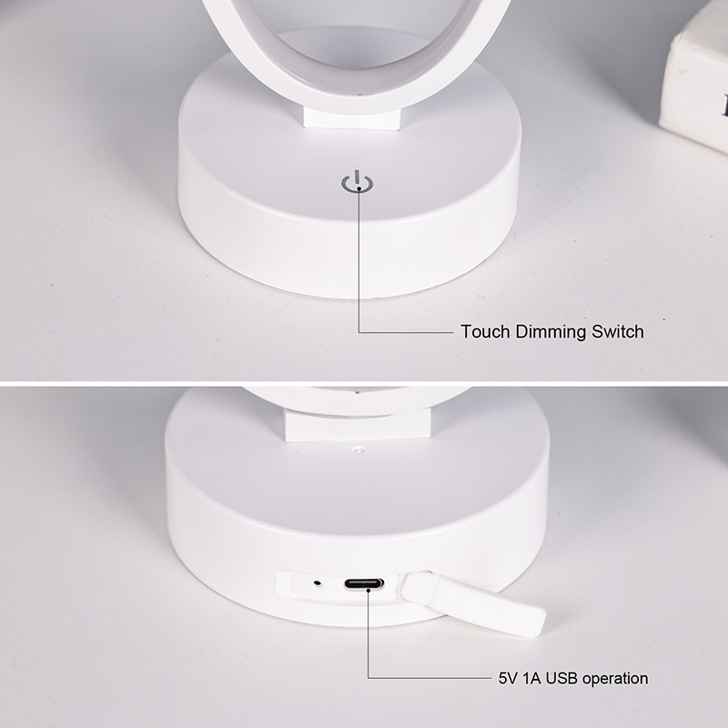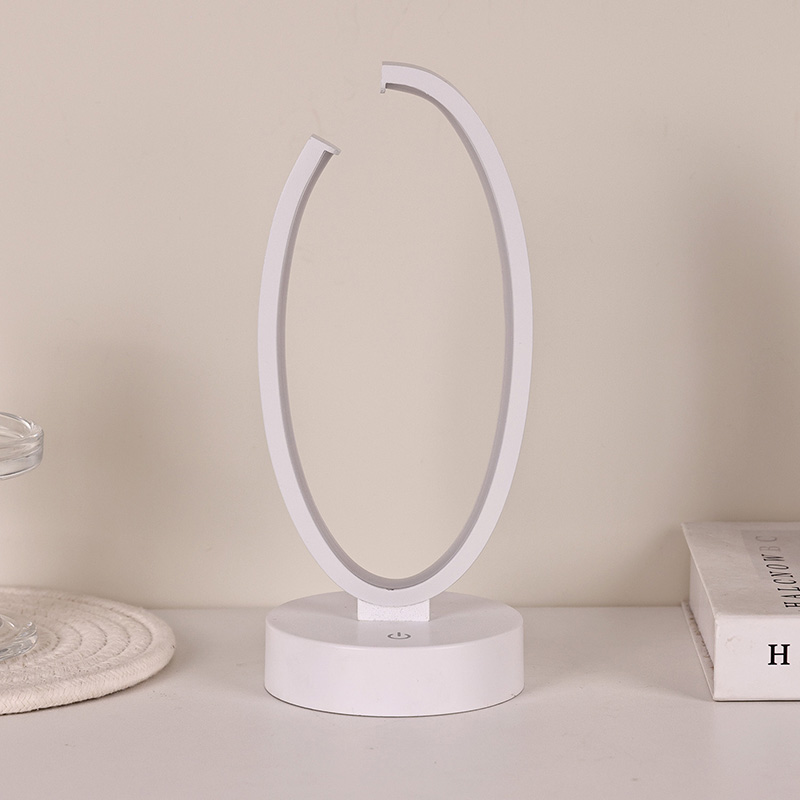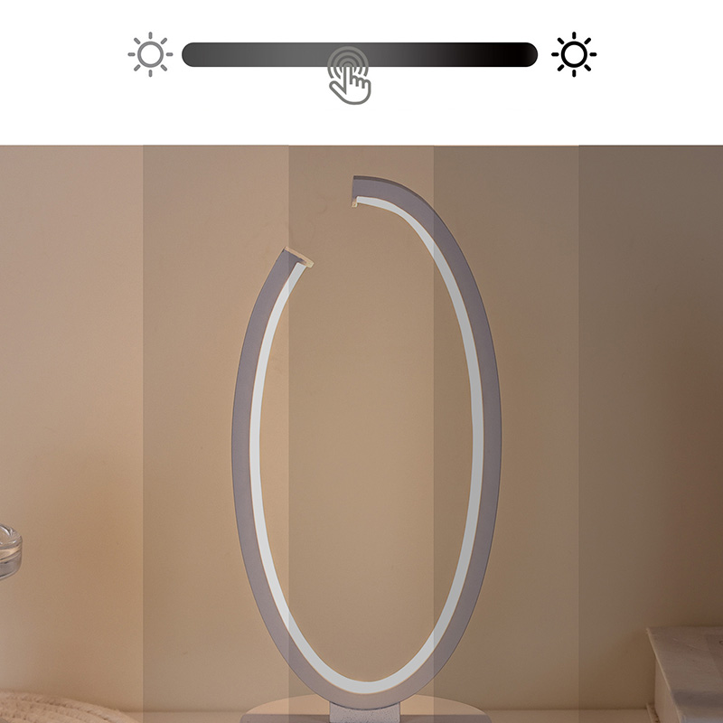 Filosofia del design: la semplicità incontra la raffinatezza La silhouette della lampada si ispira al minimalismo contemporaneo: linee pulite, forme geometriche e superfici ordinate. Il suo anello di forma ovale emette una luce soffusa che sembra fluttuare sopra la sua forma circolare