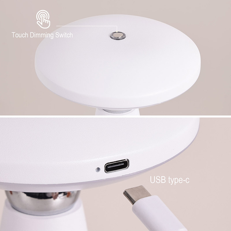 Toccare l'interruttore di attenuazioneLa lampada da scrivania a LED a fungo con batteria ricaricabile con le sue linee semplici e morbide e la forma ergonomica, il design a forma di fungo e coda di ago e la lampada da scrivania a LED a luce calda in metallo, non è solo un pratico strumento di illuminazione,