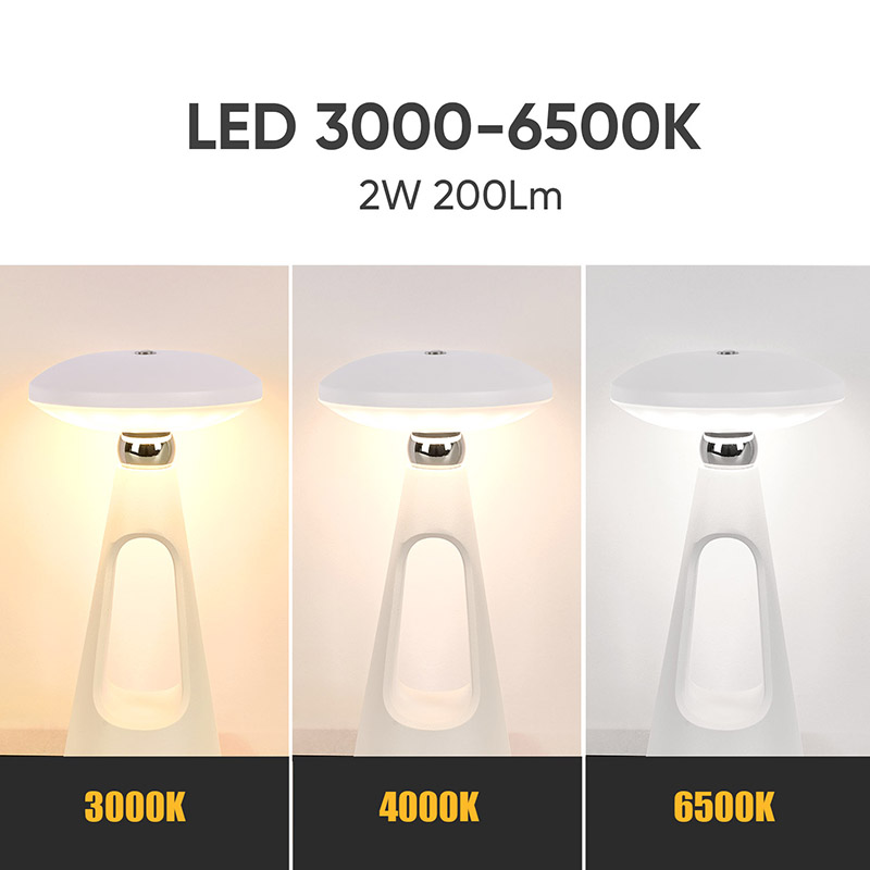 La lampada da scrivania a LED Mushroom con batteria ricaricabile è dotata di una sorgente luminosa a LED avanzata, che emette una luce morbida e calda e può regolare l'intensità della luce. L'oscuramento infinito può proteggere efficacemente i tuoi occhi. Attraverso semplici operazioni