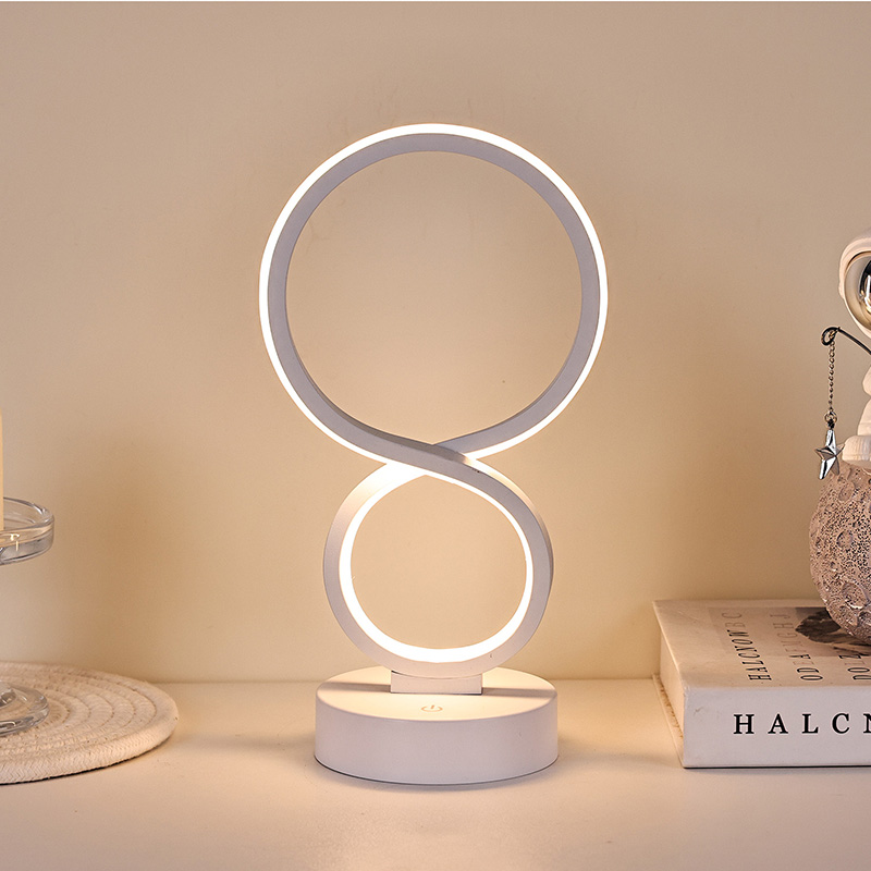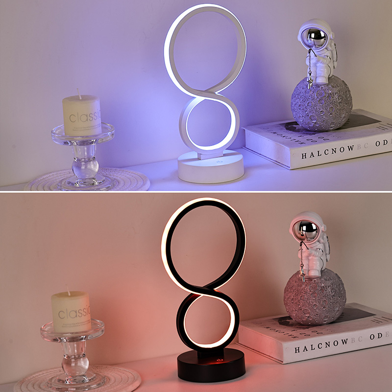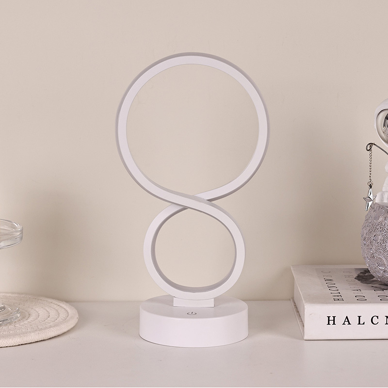 Ispirate al simbolo dell'infinito, che simboleggia la bellezza dell'eternità e della circolazione, le linee morbide delineano un'elegante silhouette a forma di 8. La combinazione di metallo e plastica di alta qualità crea una trama delicata con caldi tentacoli. Che sia posizionato in camera da letto, accanto al letto, nell'angolo della scrivania o nell'angolo del soggiorno, è un paesaggio sorprendente che aggiunge un'atmosfera artistica moderna alla casa