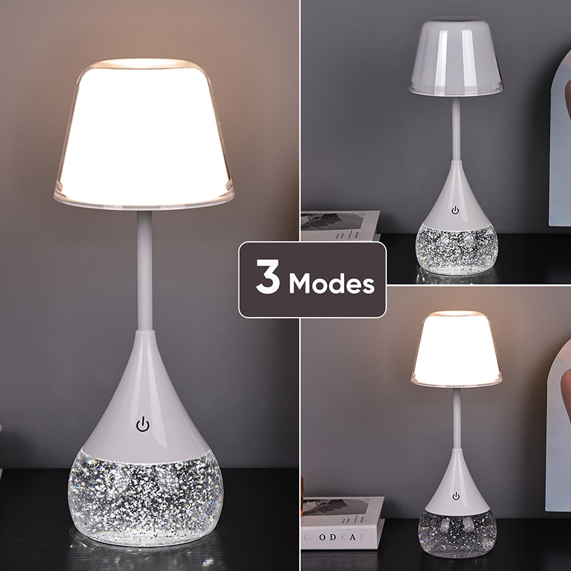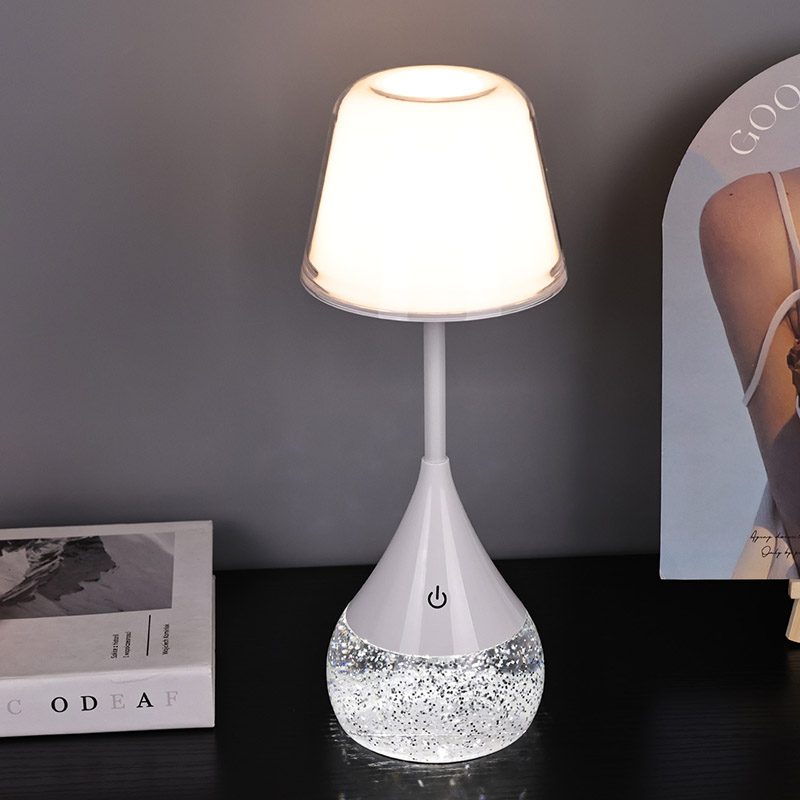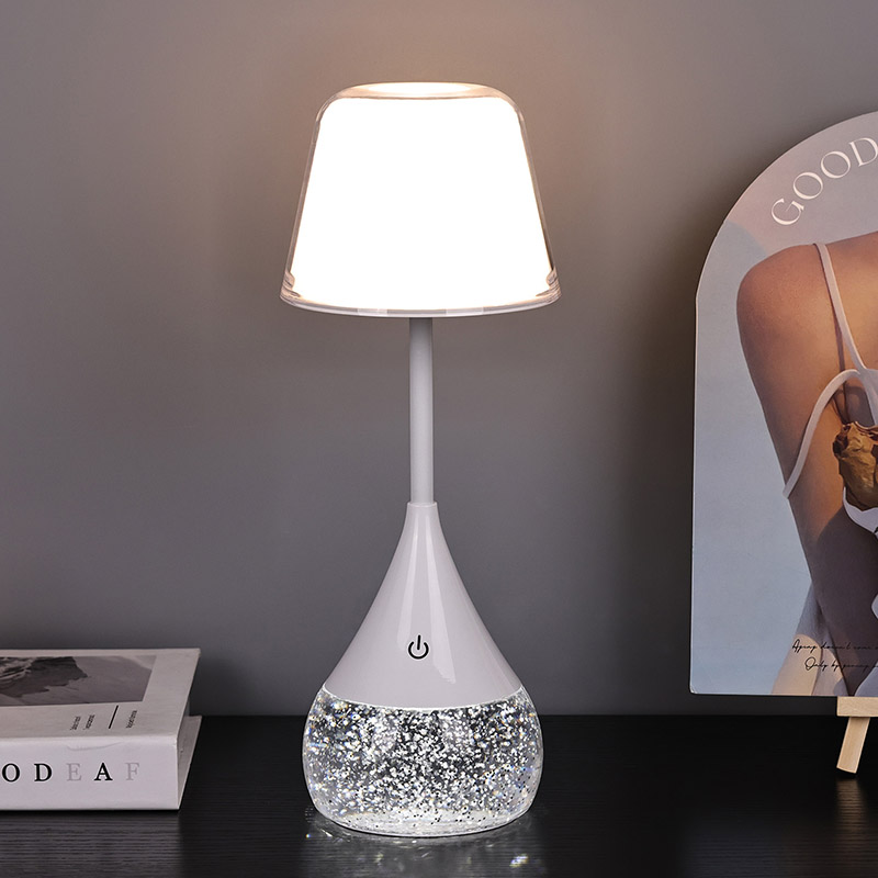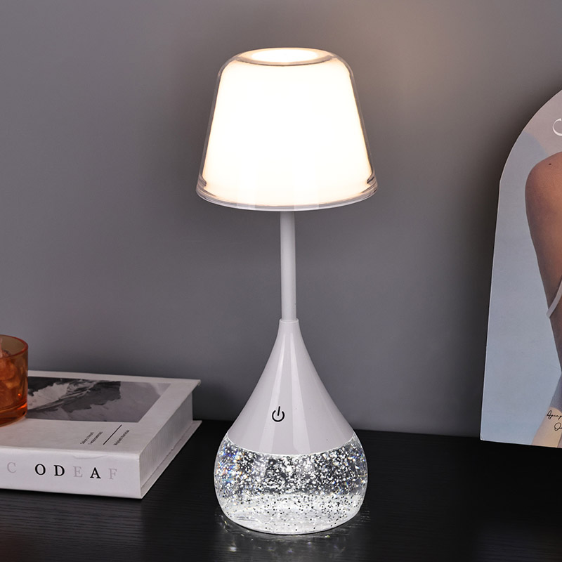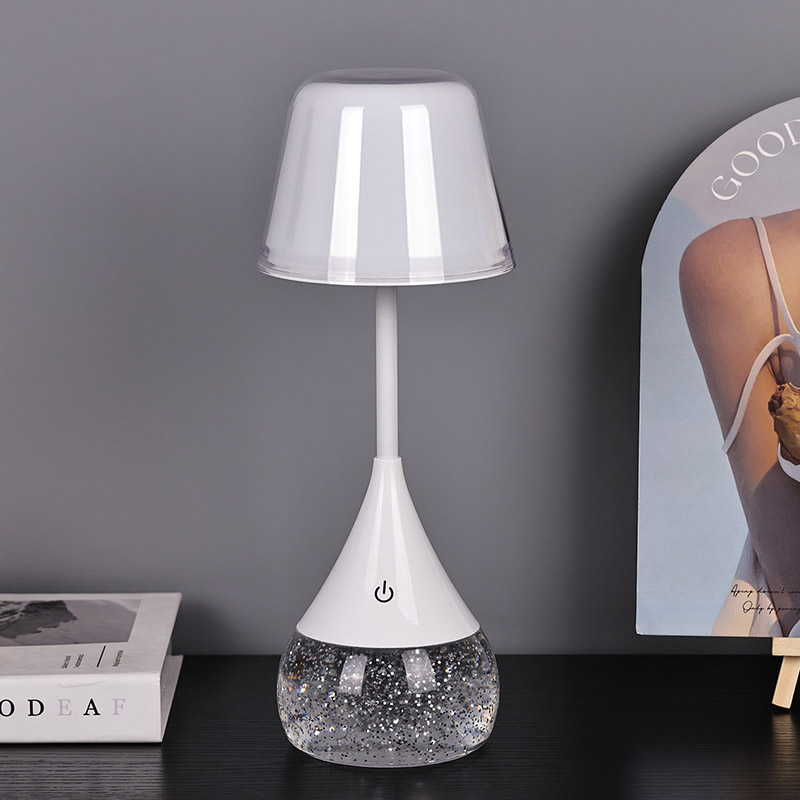 La lampada decorativa con superficie in plastica liscia è principalmente per scopi di lettura o decorazione. La base del prodotto ha un trattamento superficiale liscio, molto strutturato. La base nella parte inferiore è composta da bottiglie di plastica contenenti liquido, che contiene due piatti e scorre magnificamente. Tuttavia, questo prodotto non ha luci colorate inserite, quindi ci sono ancora differenze rispetto ad altri stili