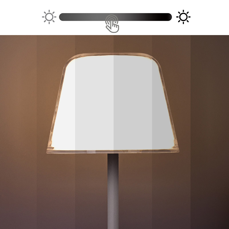 La lampada decorativa con superficie in plastica liscia ha un ingresso di alimentazione 5v1a per dimostrare la luce nella parte posteriore e nella superficie ha un controllo touch.