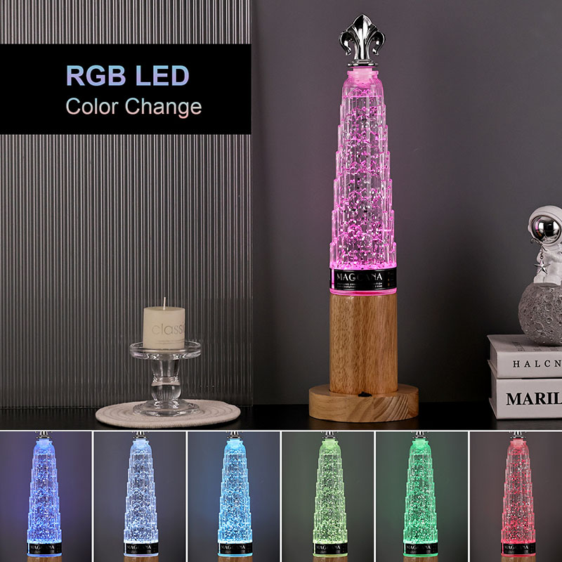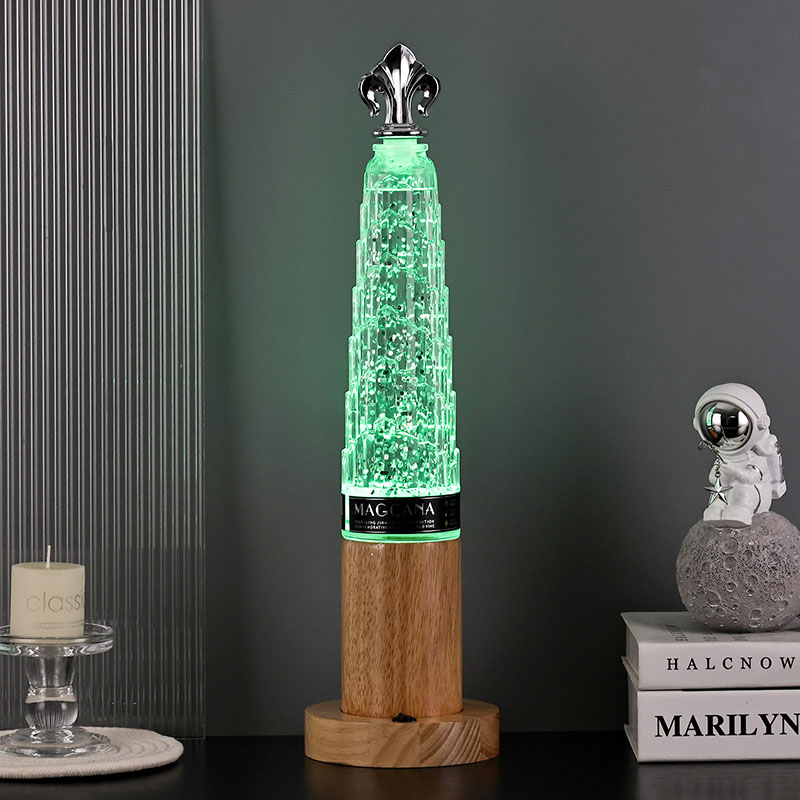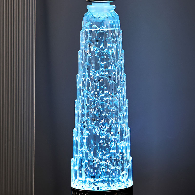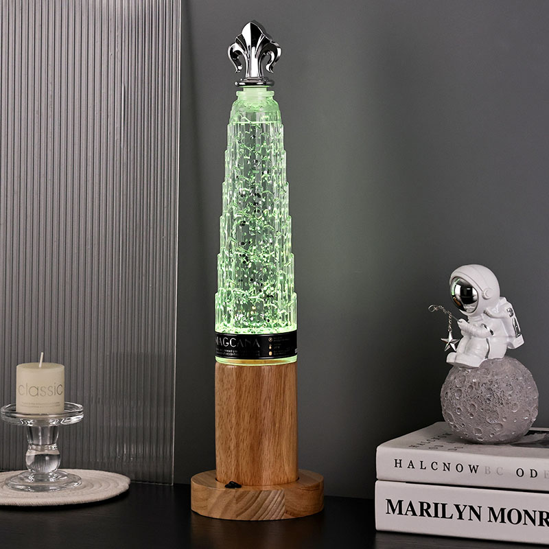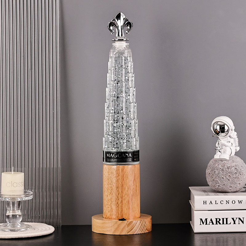 La lampada da tavolo glitter Tower Shade adotta un classico design a forma di torre, con squisite decorazioni in metallo incastonate nella parte superiore, semplici ma nobili. La bottiglia di vetro trasparente contiene liquido e