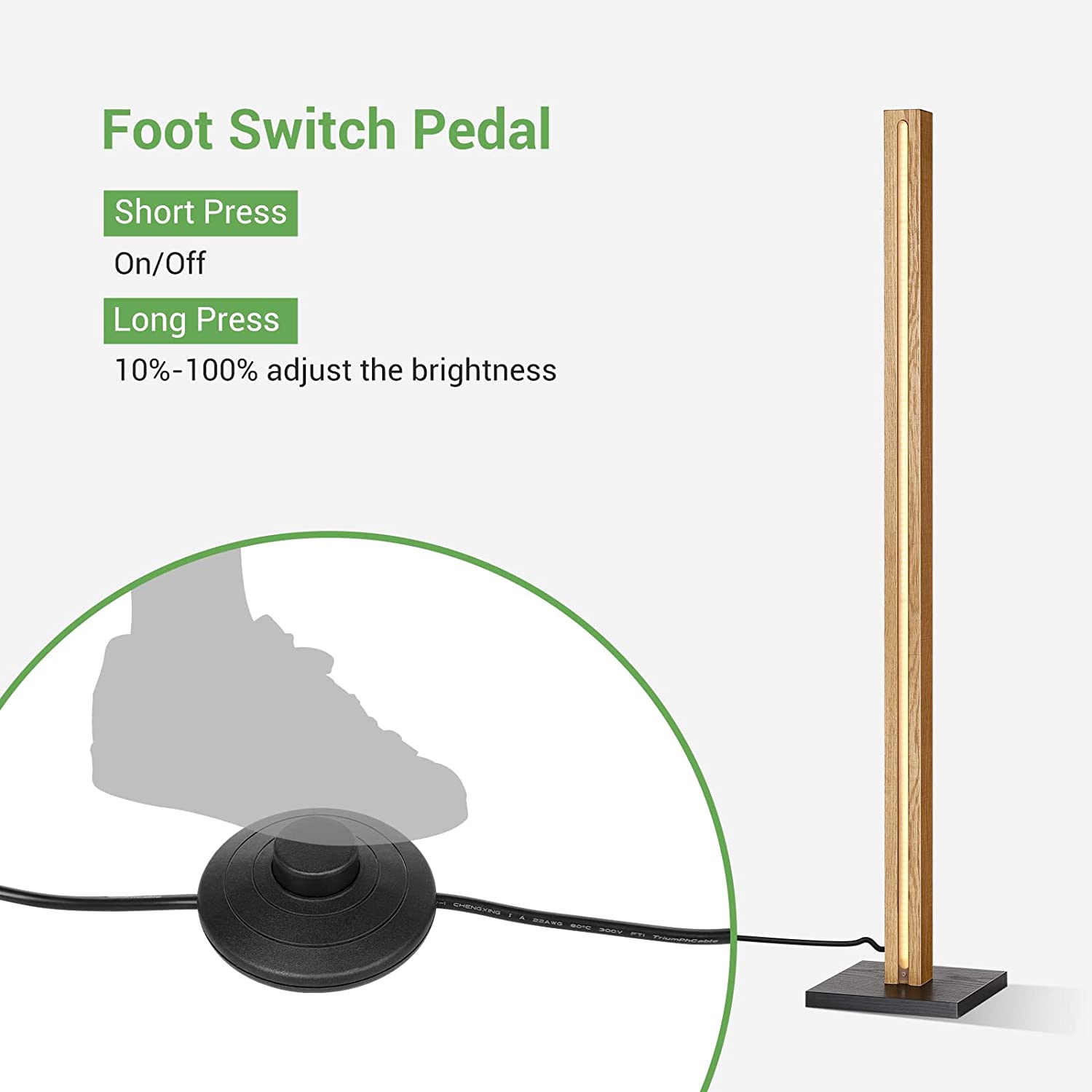 Progettata pensando alla comodità, la nostra lampada da terra a LED è dotata di un interruttore a pedale per un facile utilizzo. Basta premere l'interruttore per accendere o spegnere la lampada, rendendo un gioco da ragazzi controllare l'illuminazione senza dover armeggiare con pulsanti o interruttori. Questo dettaglio di design accurato migliora l'esperienza complessiva dell'utente, garantendo che il funzionamento della lampada sia il più semplice e intuitivo possibile.