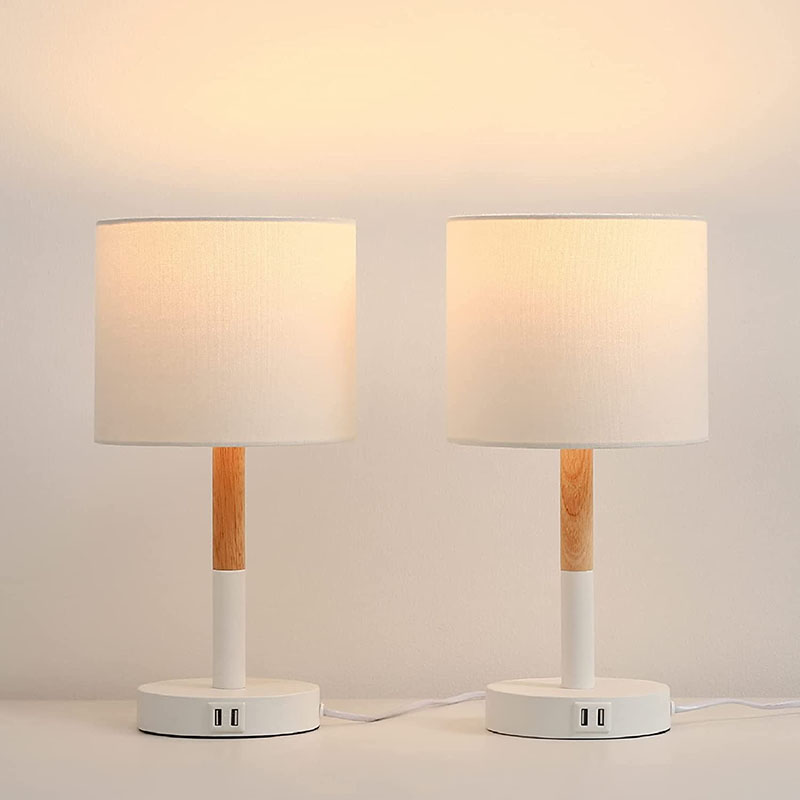 L'effetto della lampada da tavolo di ricarica della porta USB durante il funzionamento e la parte della lampada. può essere parte dell'assemblaggio della base in plastica. La base ha 2 porte di ricarica USB all'interno