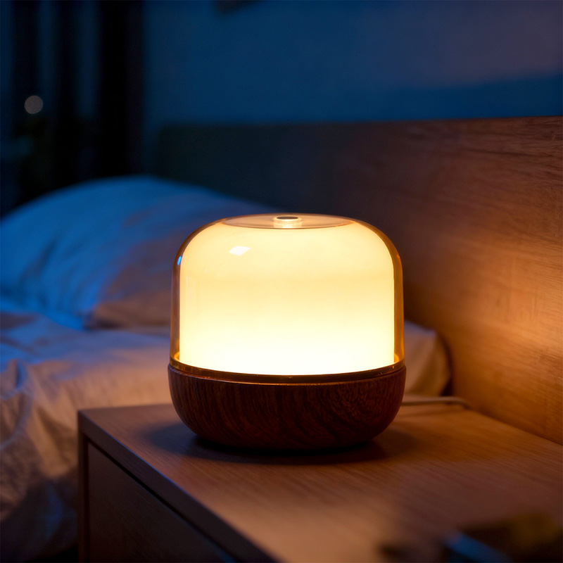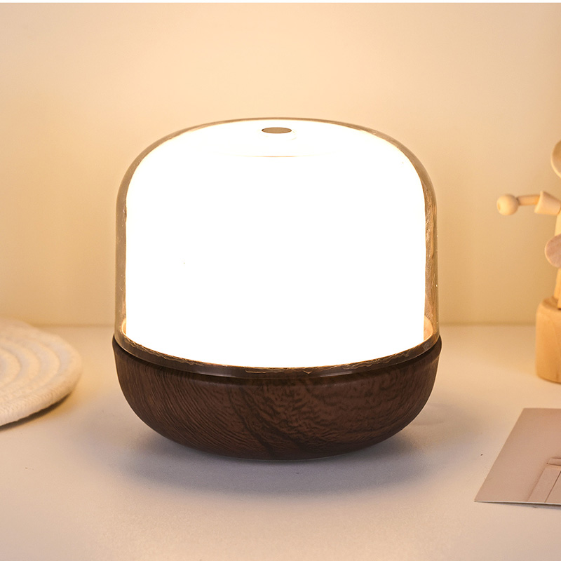 Texture naturale, calda al tatto. Il corpo della lampada è caratterizzato da un materiale che imita le venature del legno di alta precisione, con texture delicate e realistiche, che presentano la delicatezza del legno massiccio naturale. Abbinato a un design liscio e arrotondato, ricorda un'opera d'arte meticolosamente realizzata. Posizionato su un comodino, una scrivania o una toeletta, si fonde armoniosamente con l'ambiente domestico, elevando l'atmosfera generale. Le venature del legno non solo conferiscono alla lampada un fascino naturale e accessibile, ma riempiono anche ogni tocco di calore, come se fosse immerso nella tranquilla notte di una foresta profonda.